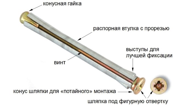 Параметр, определяющий надежность фиксации анкера. Оптимально, если элемент имеет значительную толщину. Втулки тоньше 0,8 мм не пригодны к эксплуатации. Они разрушаются под нагрузкой, что приводит к выпадению винта.