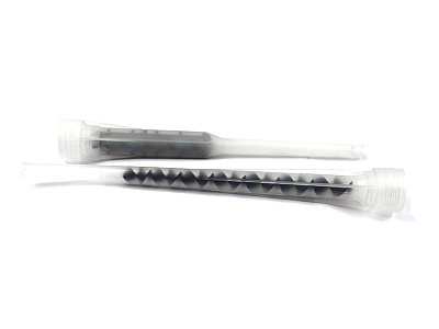 Статический смеситель служит для смешивания двух компонентов химического состава. Внутри смесителя находится спираль, проходя через неё два компонента смешиваются и на выходе из смесителя становятся однородной массой. Смеситель накручивается на баллон с химическим составом.