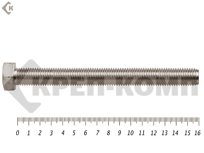 Болт DIN 933 с шестигранной головкой и полной резьбой, выполнены из нержавающей стали. Такие болты могут применяться как для внутренних работ, так и для внешних, в агрессивных средах. Диаметр резьбы болтов от М3 до М64, длина болтов от 12 до 950 мм. Болты DIN 933 применяются для соединения и крепления деталей и конструкций в строительстве и машиностроении.
