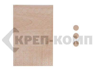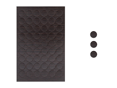 Заглушки самоклеящиеся - это очень простое, дешевое и потому популярное решение для закрывания отверстий после закручивания шурупов и стяжек на мебели. При этом самоклеящиеся заглушки представлены в самом широком ассортименте цветов, включая глянцевые отделки, отделку под дерево различных видов, однотонные поверхности. В варианте с диаметром 14 мм (под стяжку или шуруп) заглушки-самоклейки поставляются в листах, на каждом из которых расположено 54 штуки заглушек. Для приклеивания достаточно отклеить заглушку от листа и наклеить ее на нужное место в мебели.