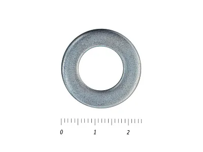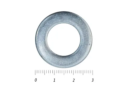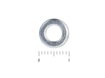 Стандартная плоская шайба DIN 125 служит для фиксации резьбовых соединений. Представляет собой плоский диск с гладким цилиндрическим отверстием в центре для установки винта, болта или другого метрического элемента. За счет своей формы увеличивает площадь прижатия головки винта или гайки к поверхности заготовки. Используется при необходимости исключить произвольное раскручивание винта, к примеру, под воздействием вибрационных нагрузок. Также плоская шайба исключает продавливание материала при чрезмерном затягивании винта. Основную нагрузку принимает на себя шайба, поэтому поверхность установки не подвергается деформации.