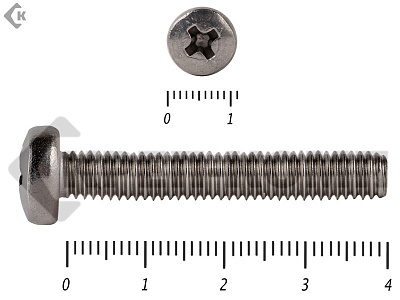 Винт с полукруглой головкой - это стальной стержень с полной метрической резьбой. Существует два варианта исполнения - с прямым шлицем и с крестообразным. Полукруглая головка обеспечивает лёгкий захват простой отверткой.
