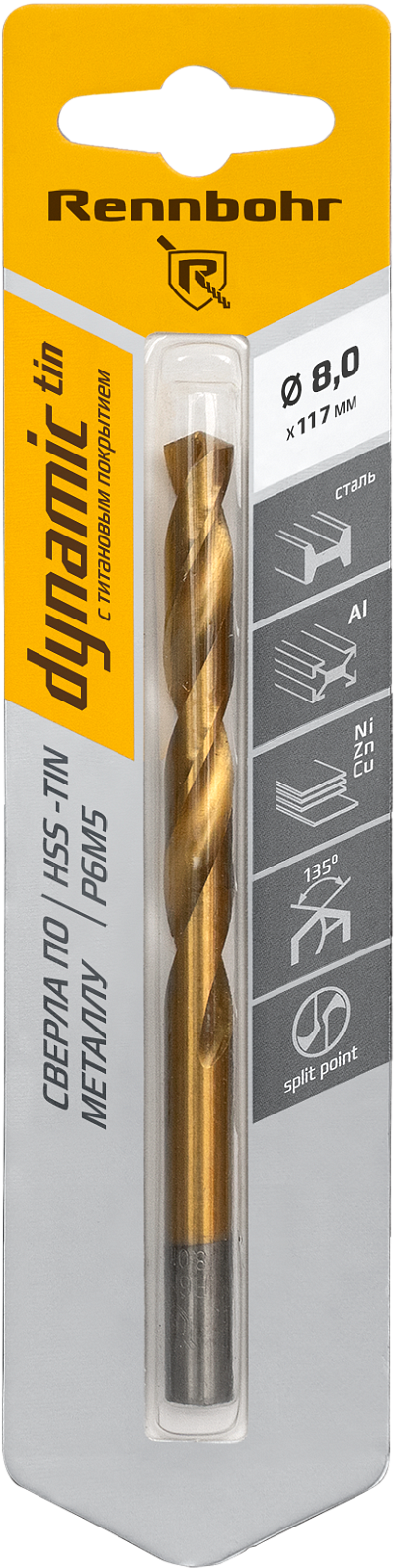 Сверло по металлу 8,5 х 117 мм Cobalt, Р6М5К5/HSS (1 шт) в инд. упаковке