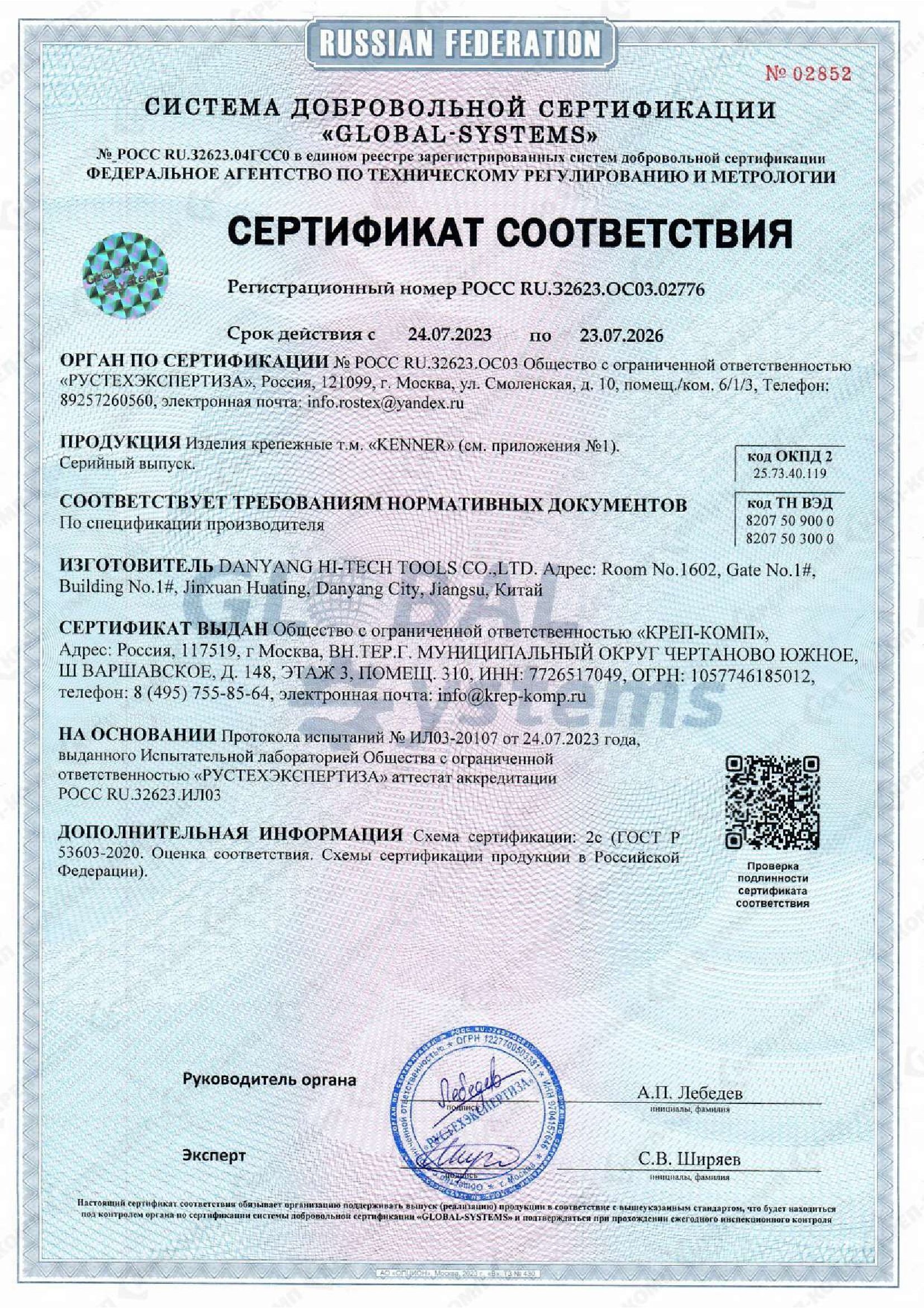 • Сертификат соответствия на буры